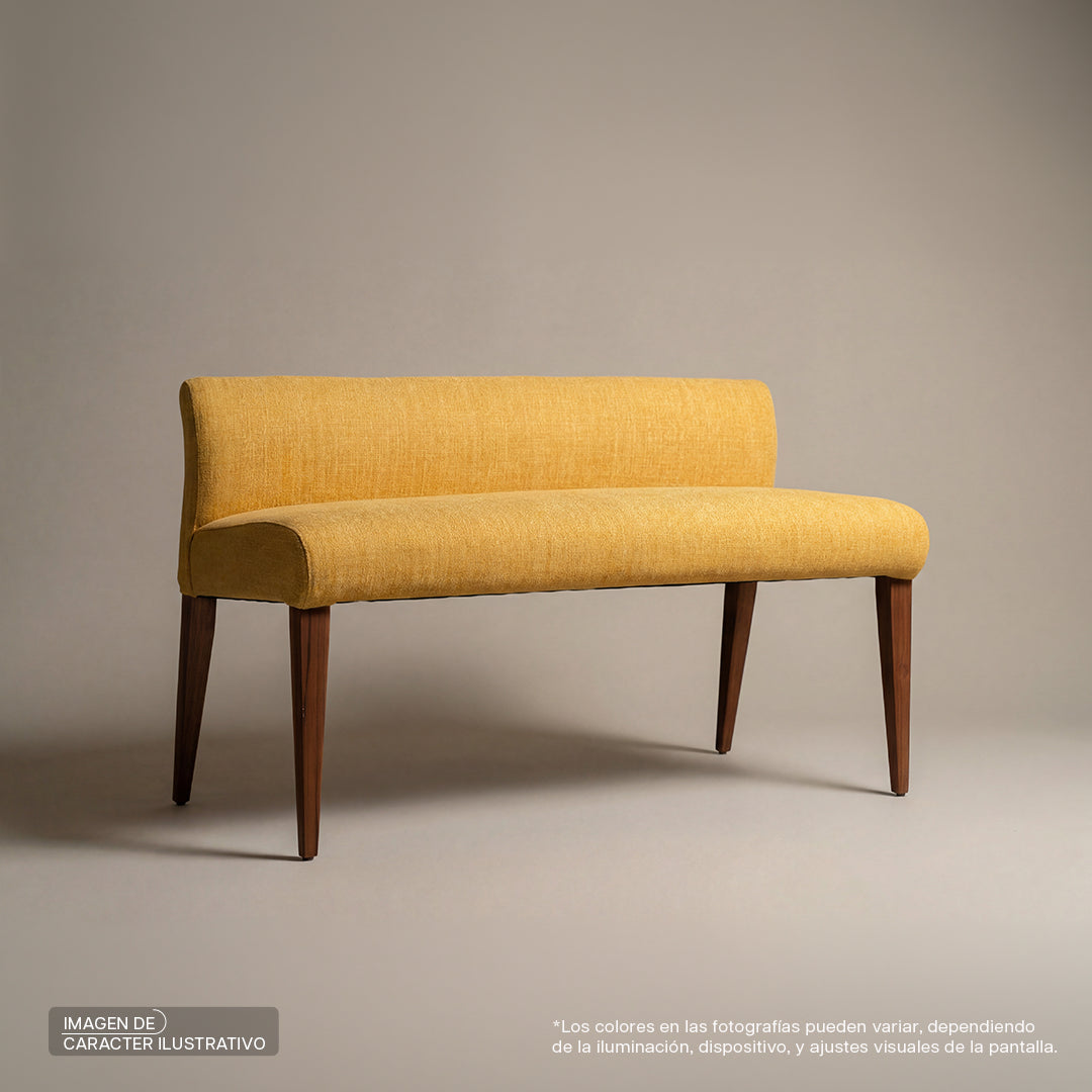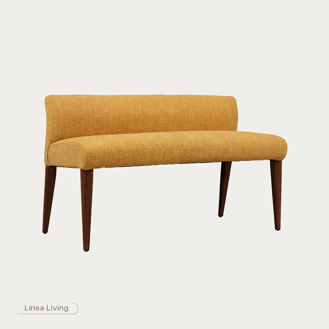 Banca Baschelli con pata color teca entintado y tela Lullaby mustard