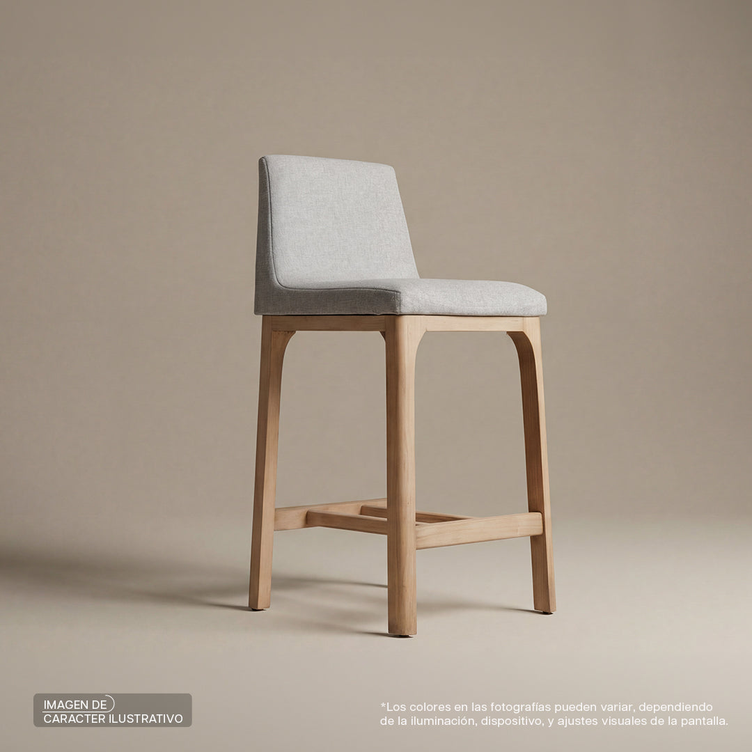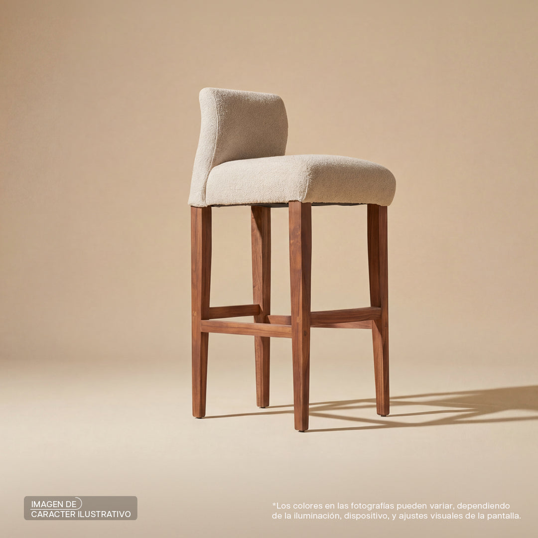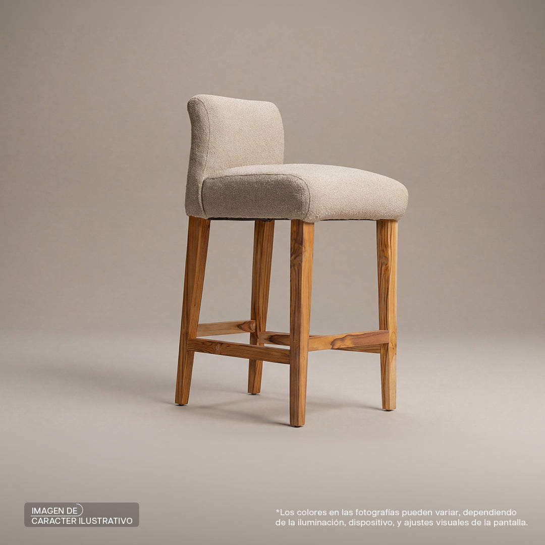 Banco desayunador Pessio con pata color teca y tela Loveme sand - Cl