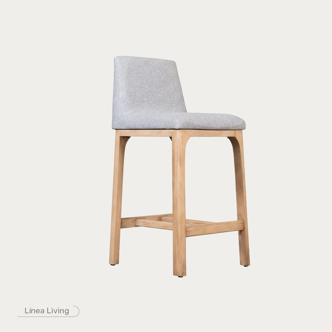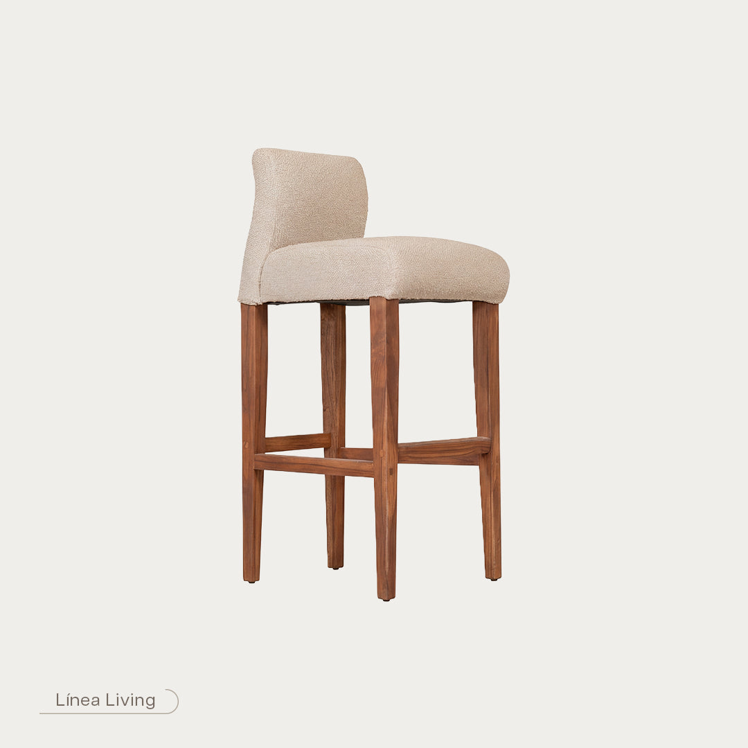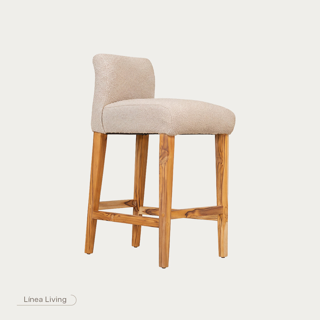 Banco desayunador Pessio con pata color teca y tela Loveme sand - Cl