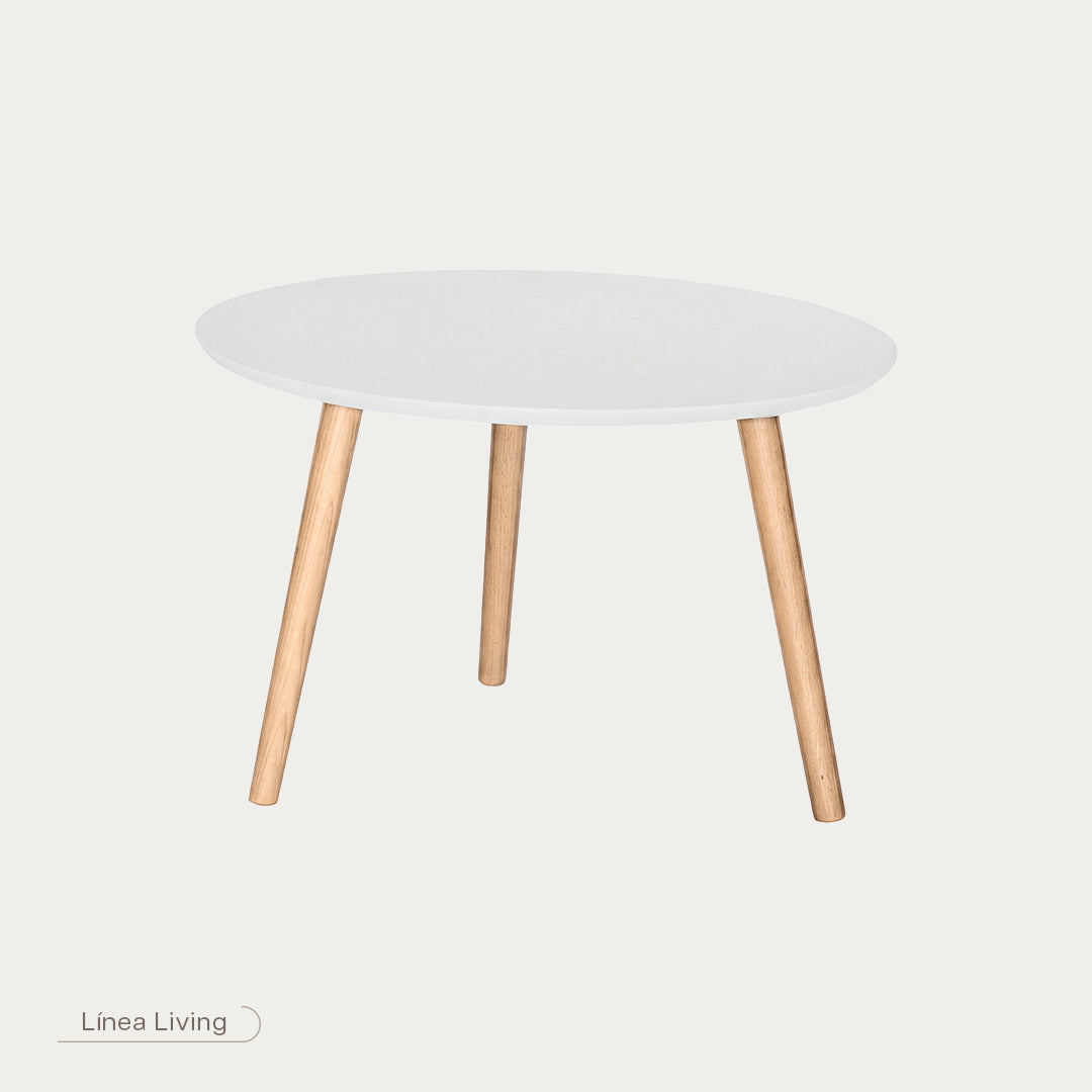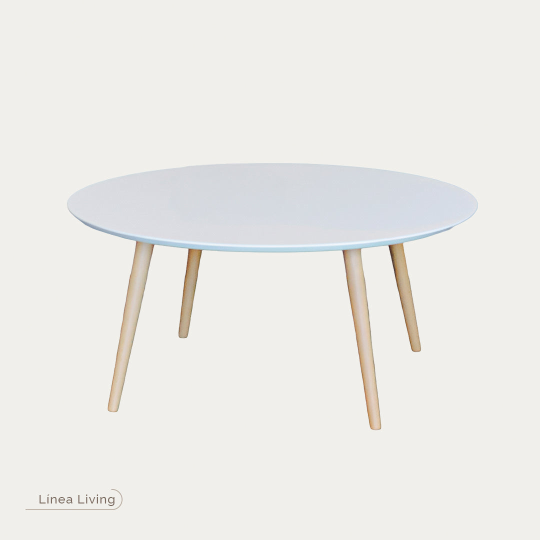 Mesa de centro redonda Paviani CH laca blanca con patas parota