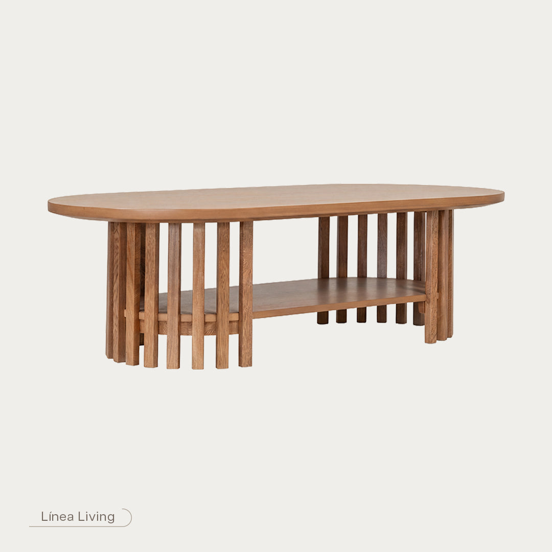 Mesa de centro ovalada Fiorenza G parota con patas negras