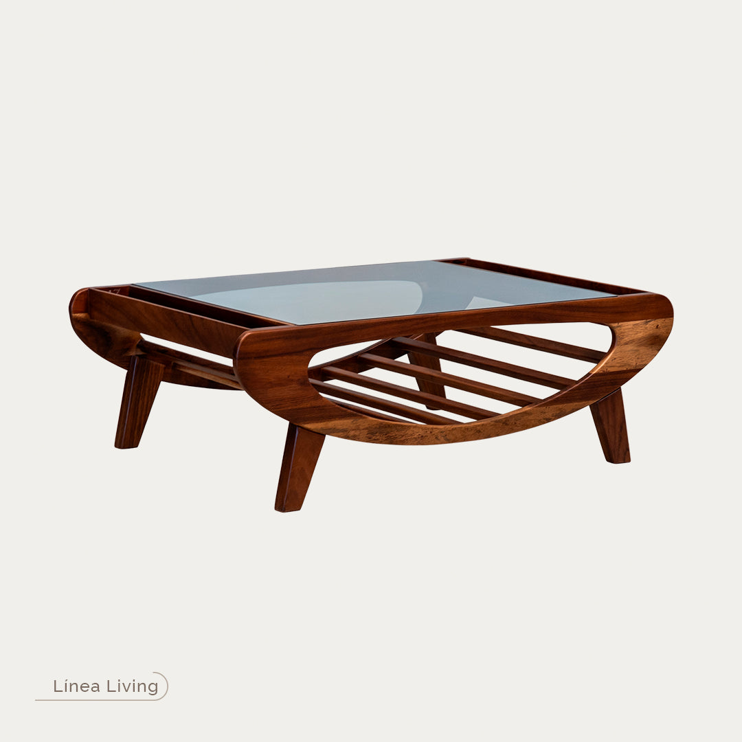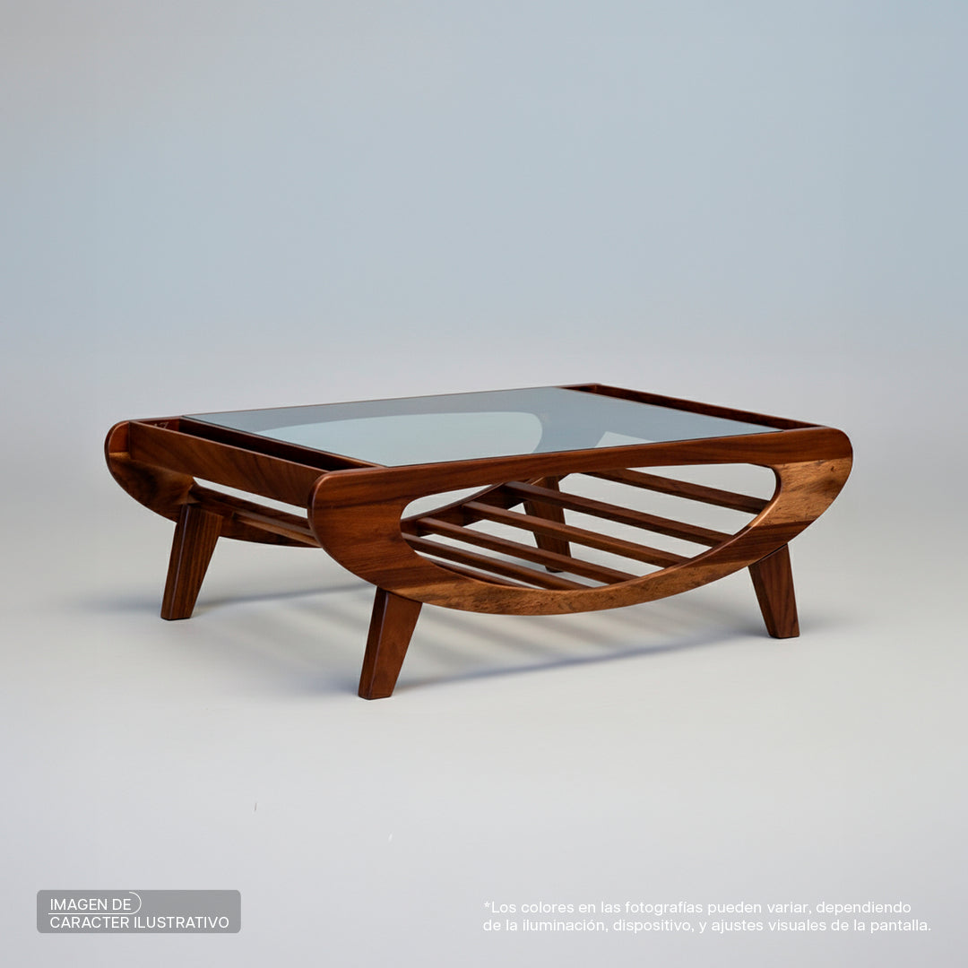 Mesa de centro rectangular Kiran CH en parota con cristal - Cl