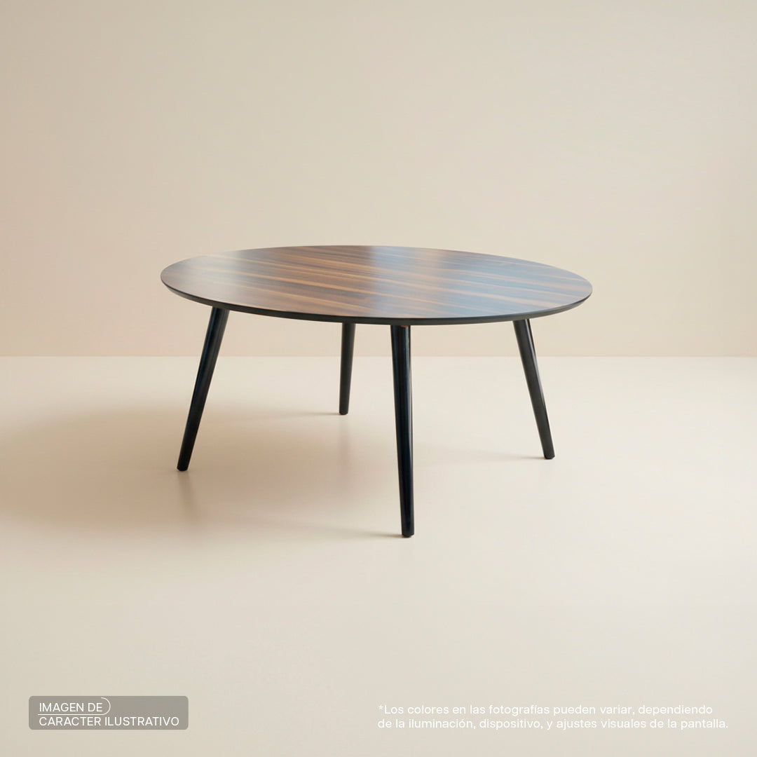 Mesa de centro redonda Paviani CH laminado parota con patas negras