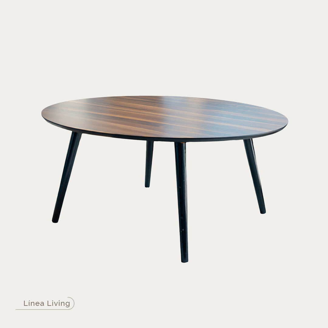 Mesa de centro redonda Paviani G laminado parota con patas negras
