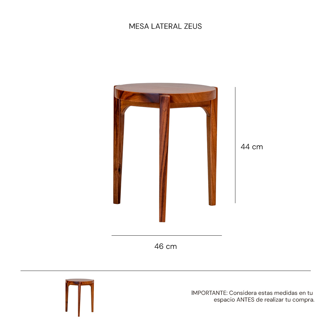Mesa lateral redonda Zeus en parota